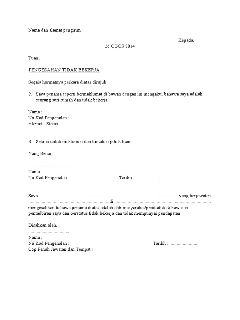 Title surat pengesahan tidak bekerja. Contoh Surat Akuan Sumpah Istri Tidak Bekerja Aerica Web. Contoh Surat Akuan Sumpah Penjagaan Satu salinan penyata gaji pencen PERKESO.